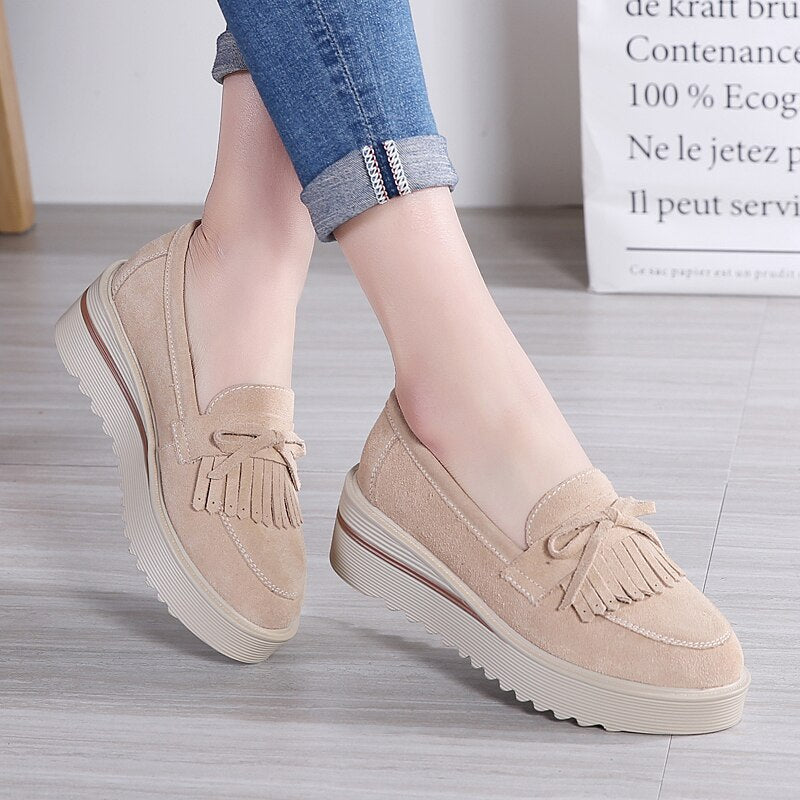 Ingmarie - Stilfulla Mockaloafers med Toffsar och Kilklack